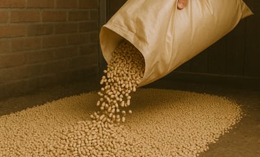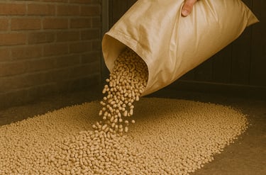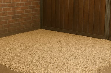 Für eine Standardbox mit etwa zwölf Quadratmetern Fläche werden rund 100 bis 125 Kilogramm Strohpellets benötigt. Diese werden gleichmäßig auf dem Boden verteilt, sodass eine erste, noch feste Schicht entsteht.
