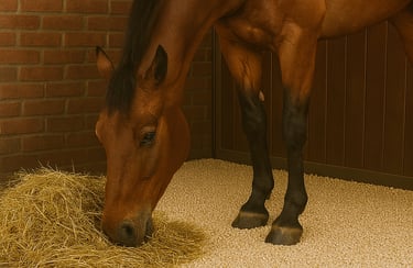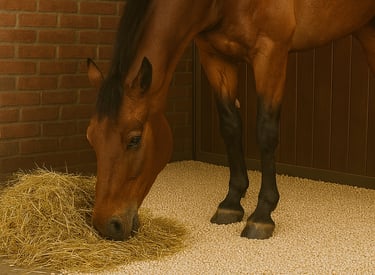 Durch die Verwendung von Strohpellets entsteht eine saubere, trockene und geruchsarme Umgebung in der Pferdebox. Das Pferd liegt auf einem komfortablen Untergrund, und der Pflegeaufwand wird deutlich reduziert, da sich der Mist leicht entfernen lässt und die Einstreu länger verwendbar bleibt.