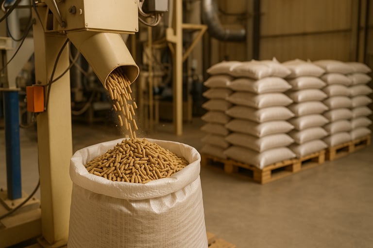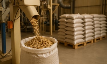 Bereit für den Versand: Die fertigen Pellets werden in Säcke oder andere Verpackungen abgefüllt, bereit für den Verkauf oder Versand. So erhalten Sie immer ein hochwertiges Produkt