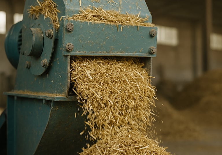 Feine Zerkleinerung: Das getrocknete Stroh wird in kleine Stücke oder Fasern zerkleinert. Dieser Prozess erleichtert das anschließende Pressen und hilft, die gewünschte Pelletstruktur zu erreichen.