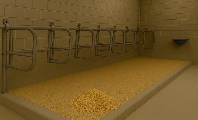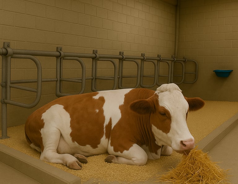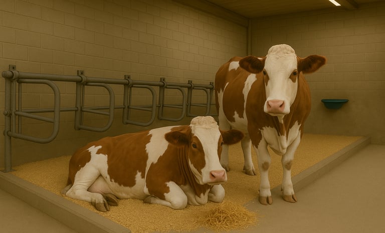 Durch die Verwendung von Strohpellets entsteht eine saubere, trockene und geruchsarme Umgebung im Stall. Die Rinder liegen auf einem komfortablen und hygienischen Untergrund, der Haut und Gelenke schont. Gleichzeitig reduziert sich der Pflegeaufwand deutlich, da der Mist leicht zu entfernen ist und die Einstreu länger verwendbar bleibt.